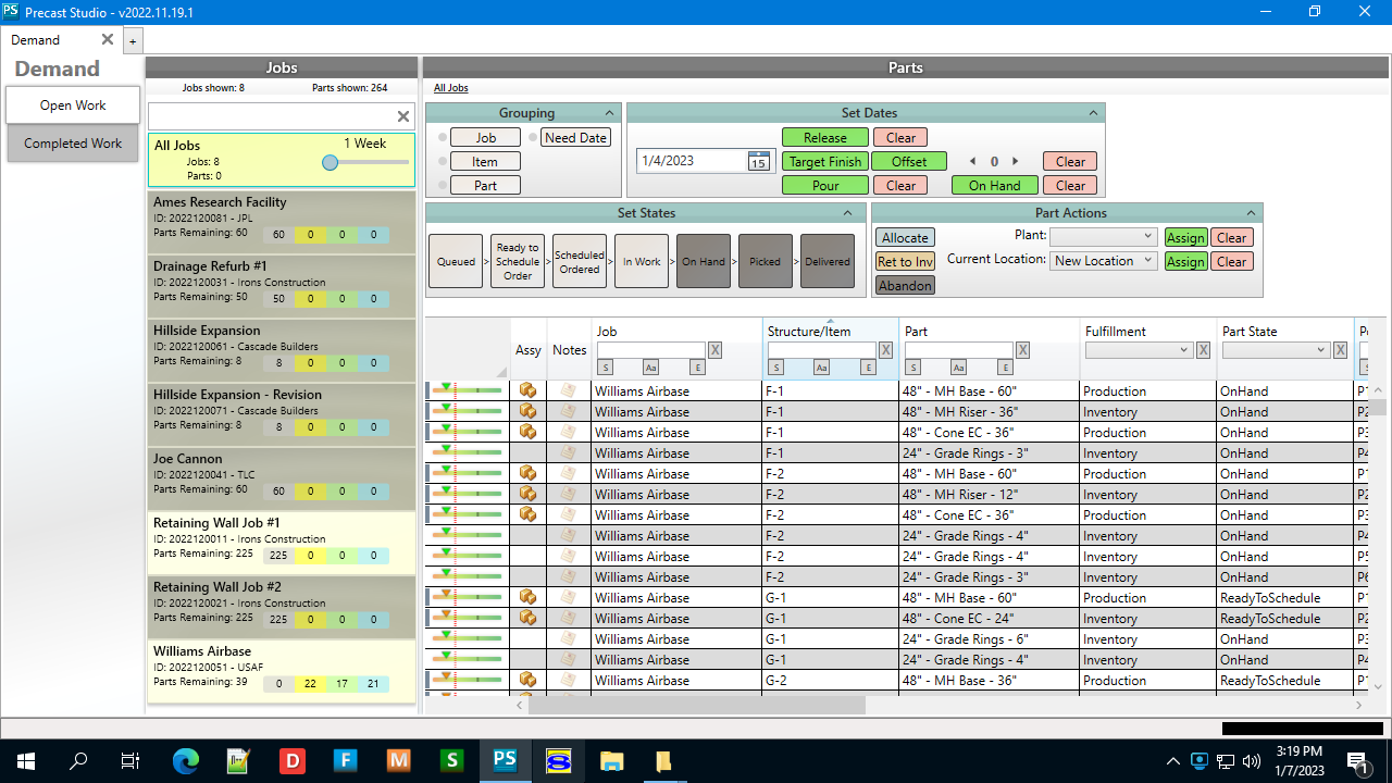 You can manage the states and dates of work for all jobs, down to the part level as needed.