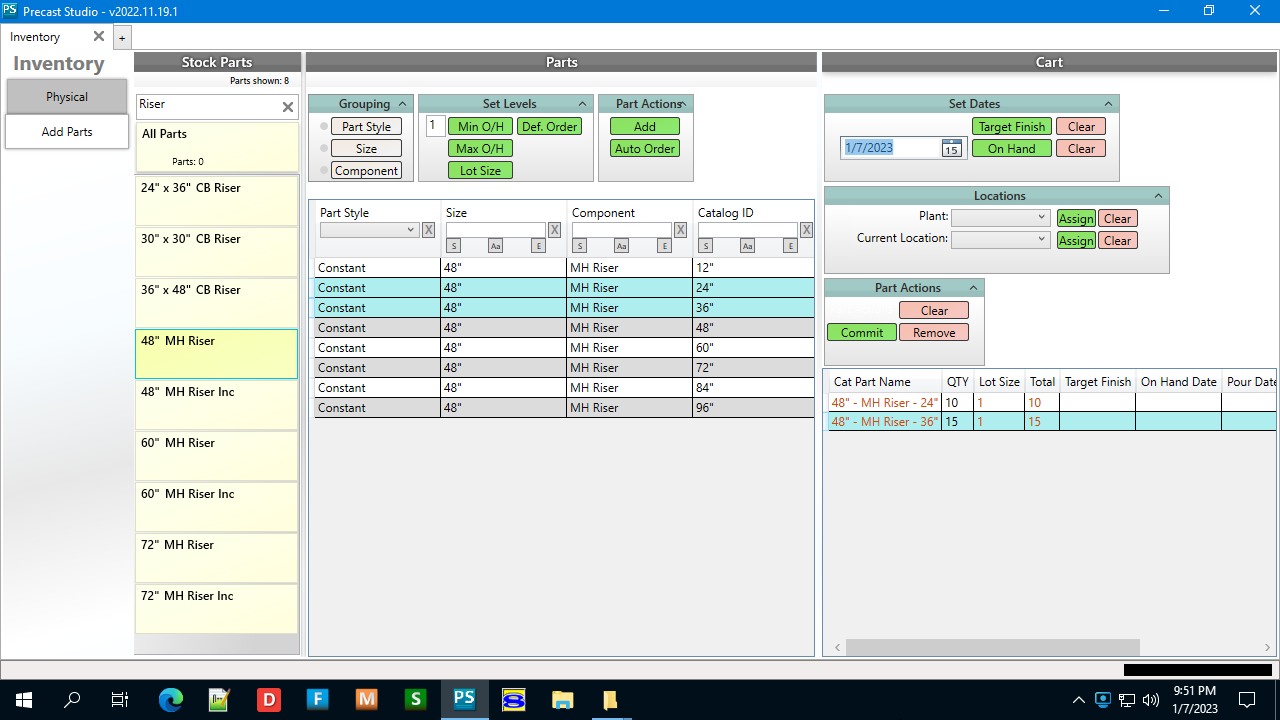 Replenishing your inventory levels is as easy as adding parts to a shopping cart, giving them a need date, and committing them to production or purchasing.