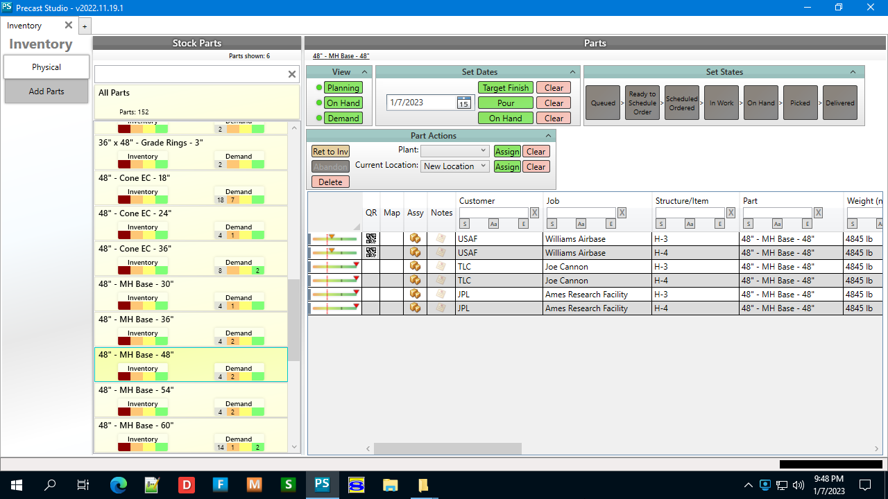 As you enter your production dates, completed parts are automatically removed from the production schedule and marked as on-hand.